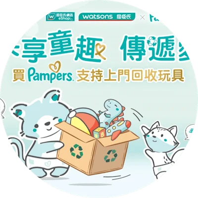 凡於2025年3月21日至4月10日期間,於屈臣氏網店購買Pampers產品滿$999,可享免費上門回收玩具服務*,玩具將經過清潔和整理後,轉贈給有需要的家庭,賦予玩具新生命的同時減少資源浪費。