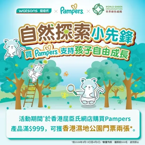 To further extend this philosophy into society, Pampers will collaborate with the Watsons from March 13 to April 2, 2026, to launch a consumption rewards donation program. For every single transaction on the Watsons eShop where customers purchase any Pampers products totaling HK$999 or more, Pampers will donate the equivalent value of diapers and donation (totaling HK$60 per eligible transaction) to the World Green Organization. These donations will be used to organize nature exploration activities specifically designed for children in need, giving more grassroots children the opportunity to connect with nature and learn about environmental protection.